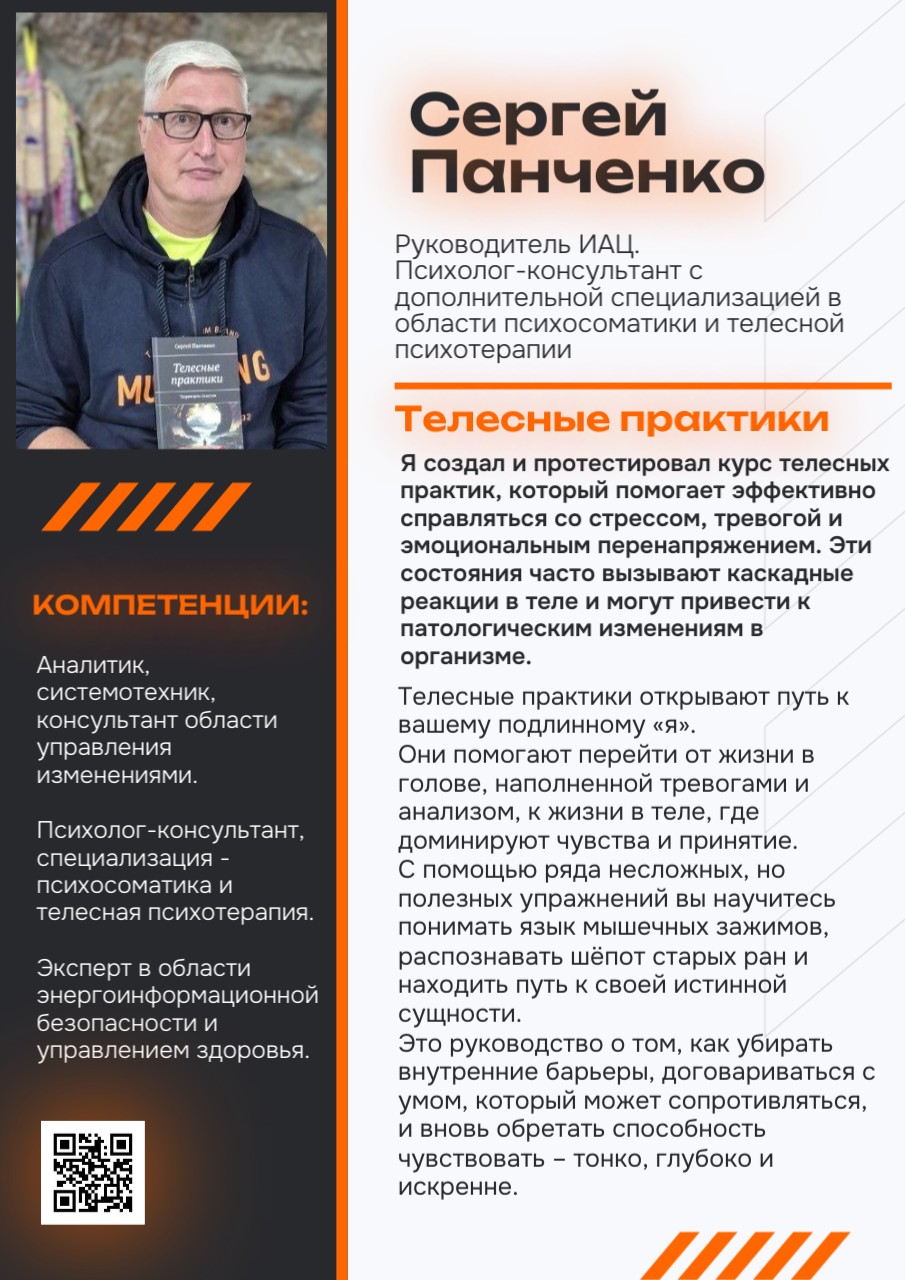 То есть я научился в себе это откапывать и это вытаскивать. Вот такая психологическая работа мне очень помогла. Многое что подчеркнул для своего личного опыта и в качестве знаний, и также работа с физическим телом благодаря занятиям с Сергеем Ивановичем и Русланом. Вот это тоже дало большой толчок для развития собственной личности.